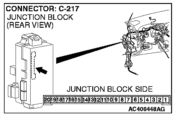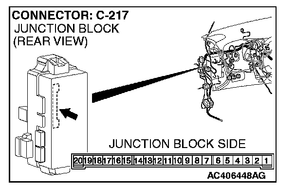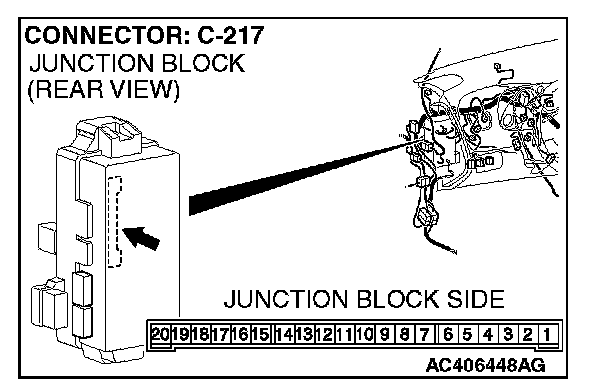 STEP 13. Check the wiring harness between rear dome light connector D-06 (terminals 1 and 3) and ETACS-ECU connector C-217 (terminals 5 and 6).