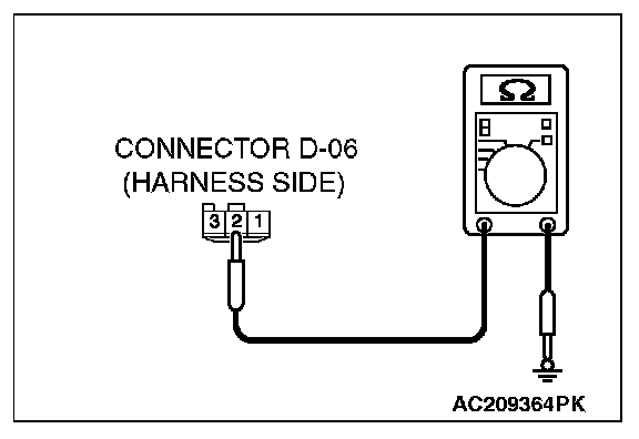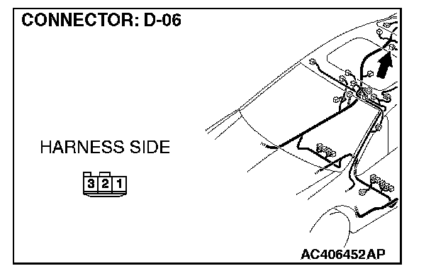 1. Disconnect rear dome light connector D-06 and measure the resistance available at the wiring harness side of the connector.