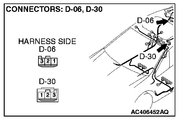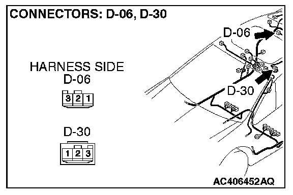 NOTE: Also check intermediate connector D-30 for loose, corroded, or damaged terminals, or terminals pushed back in the connector. If intermediate connector D-30 is damaged, repair or replace the damaged component(s) as described in Harness Connector Inspection.