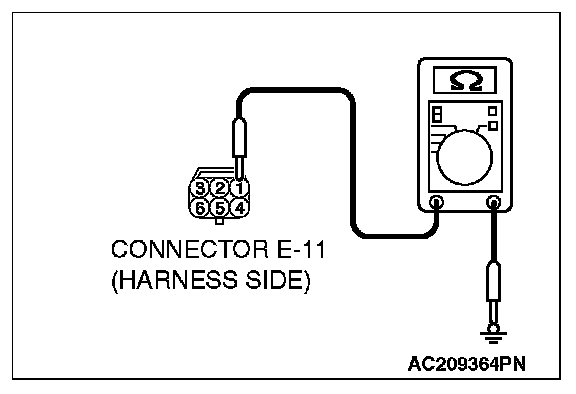 STEP 4. Check the ground circuit to the door lock actuator (LH). Measure the resistance at door lock actuator (LH) connector E-11.