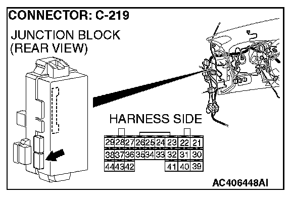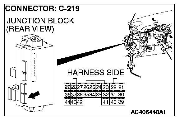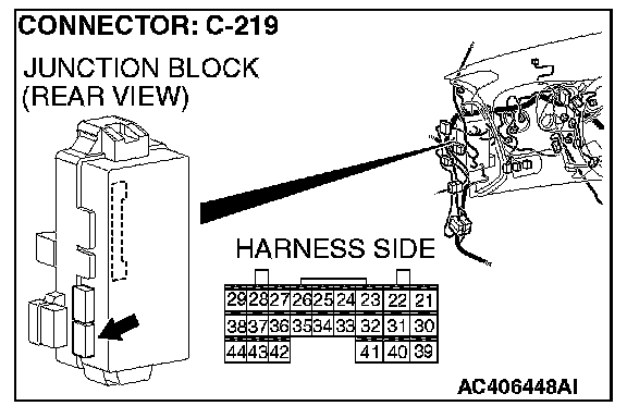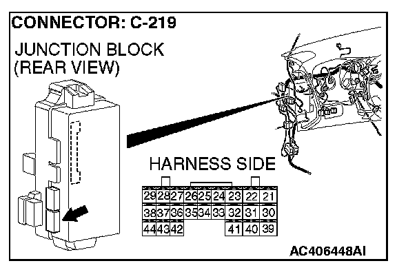 STEP 6. Check ETACS-ECU connector C-219 for loose, corroded or damaged terminals, or terminals pushed back in the connector.