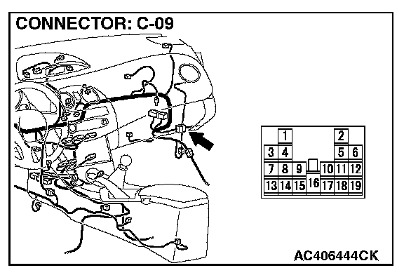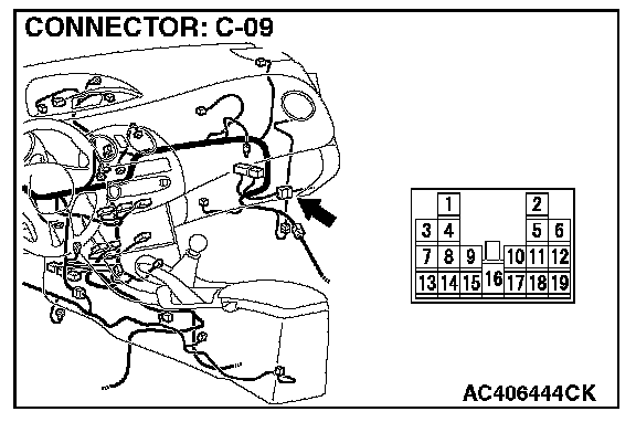 NOTE: Also check intermediate connector C-09 for loose, corroded, or damaged terminals, or terminals pushed back in the connector. If intermediate connector C-09 is damaged, repair or replace the connector as described in Harness Connector Inspection.