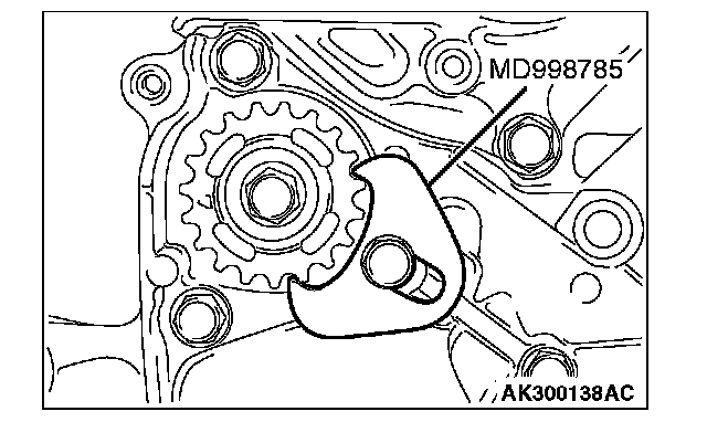 1. Set special tool MD998785 as shown to prevent the counterbalance shaft sprocket from turning together.