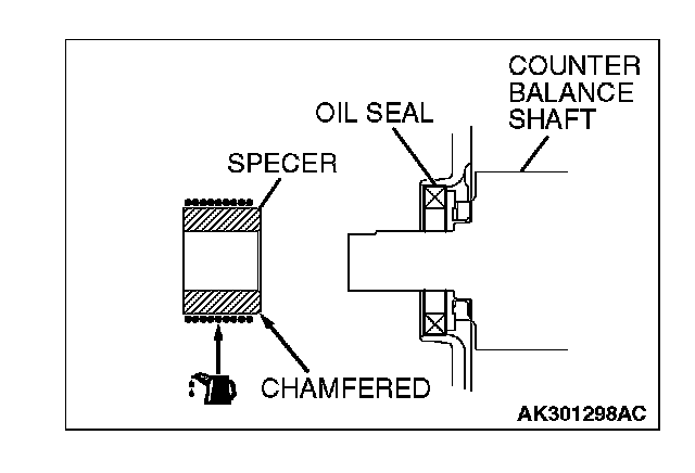 2. Install the spacer with the chamfered end facing toward the oil seal.