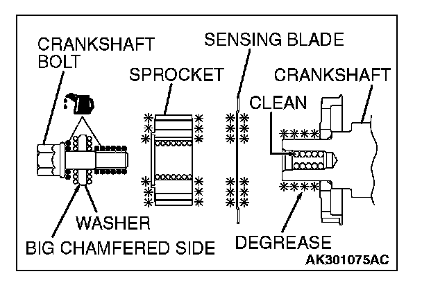 1. Clean and then degrease the contacting surfaces of the crankshaft sprocket, sensing blade and crankshaft.