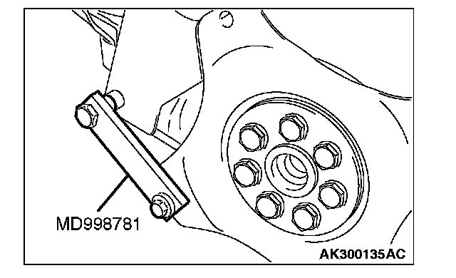 1. Install special tool MD998781 to hold the drive plate.