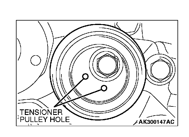 3. Make sure that the tensioner pulley center and the bolt center are positioned as shown in the illustration.