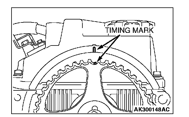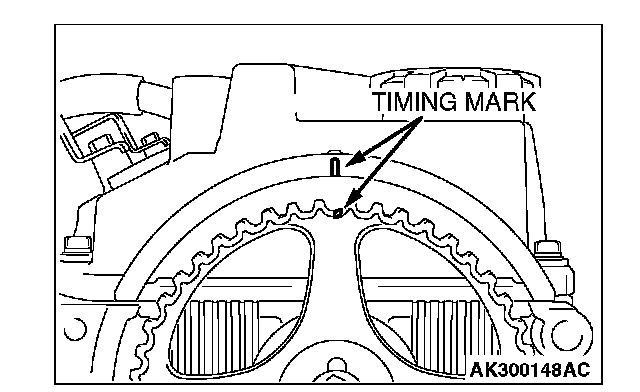 1. Align the timing mark on the camshaft sprocket with the timing mark on the rocker cover.