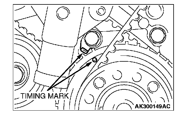 2. Align the timing mark on the crankshaft sprocket with the timing mark on the front case.