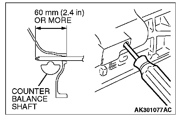 1. Insert a Phillips head screwdriver [shank diameter 8 mm (0.3 inch)] through the plug hole on the left side of the cylinder block to block the left counterbalance shaft.