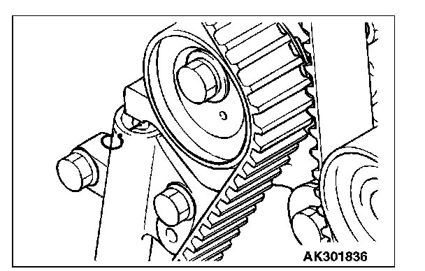 2. Loosen the tensioner pulley bolt, and then remove the timing belt.