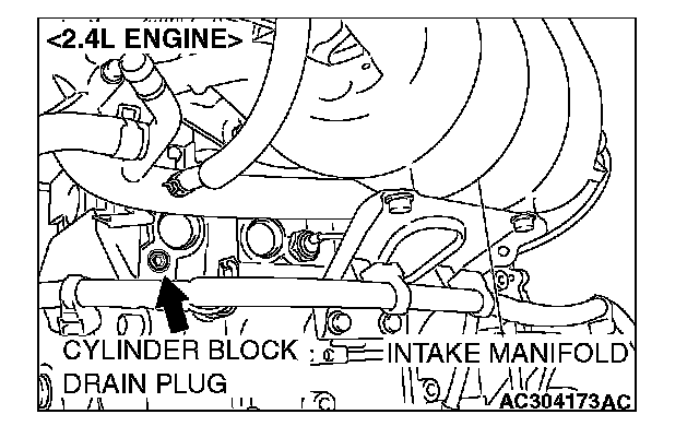 4. Drain the water in the water jacket by unplugging the drain plug of the cylinder block.