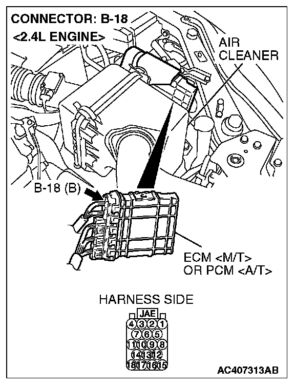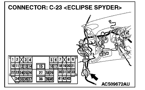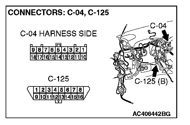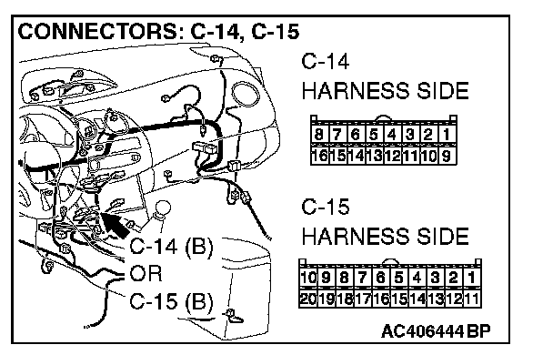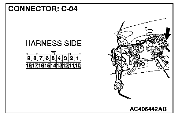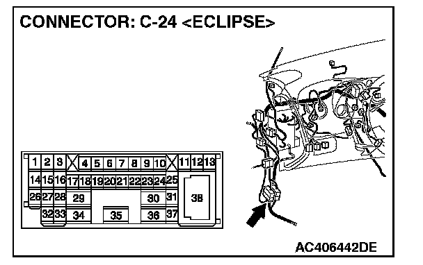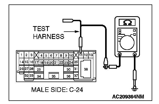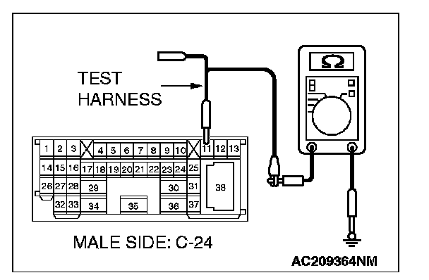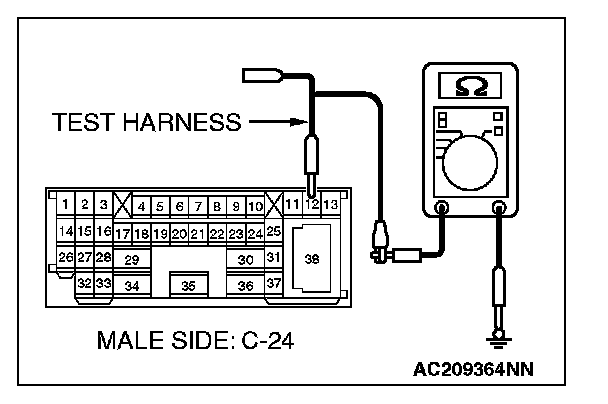 2. Disconnect intermediate connector C-24, and measure the resistance at the male side (at front wiring harness side).