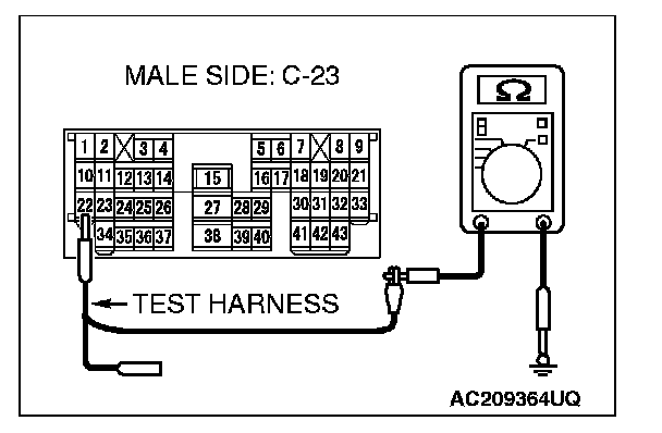 5. Measure the resistance between intermediate connector (C-23) terminal 22 (CAN_H) and body ground.