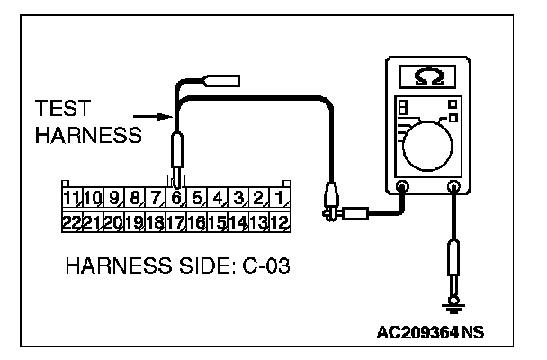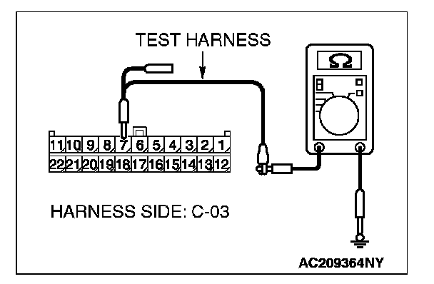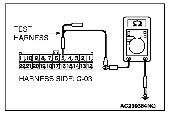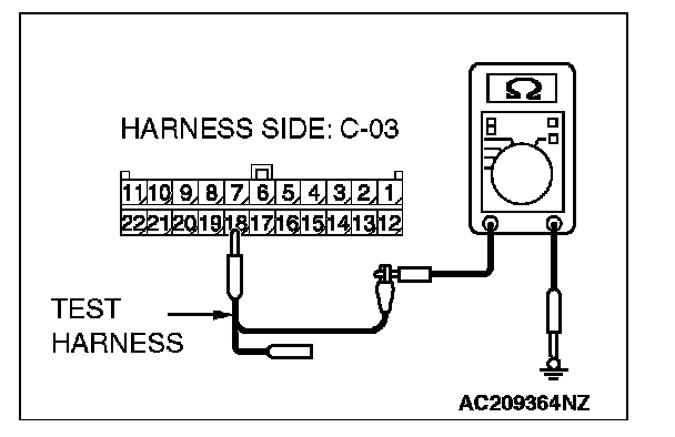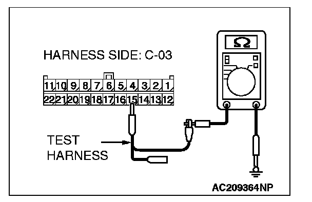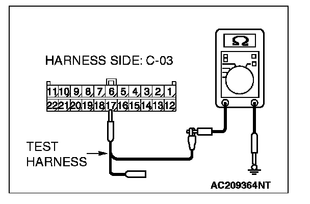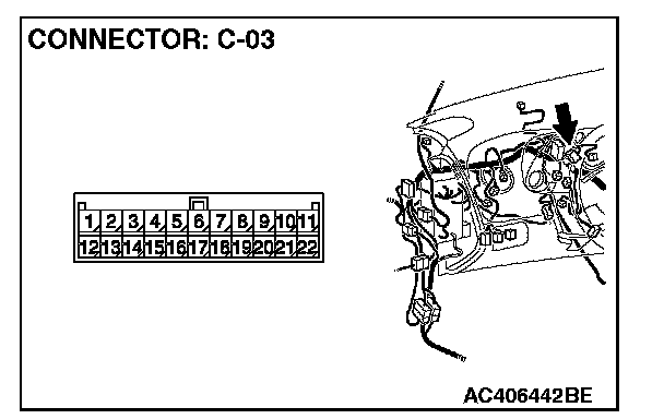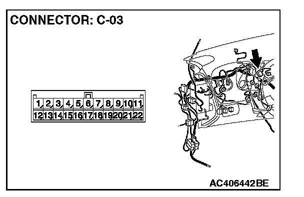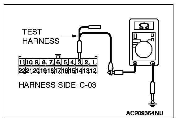 2. Disconnect joint connector (3) C-03, and measure the resistance at the wiring harness side of joint connector (3) C-03.