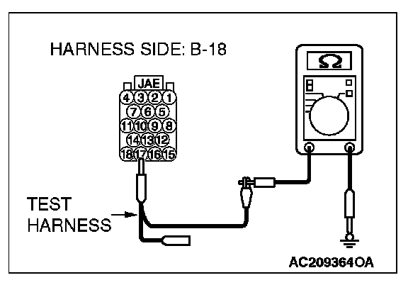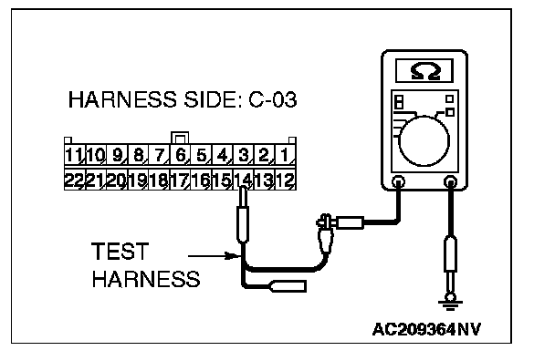 4. Measure the resistance between joint connector (3) terminal 14 and body ground.