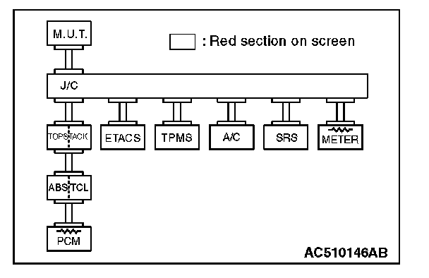 3. Diagnose CAN bus lines, and check if scan tool MB991958 screen is as shown in the illustration.