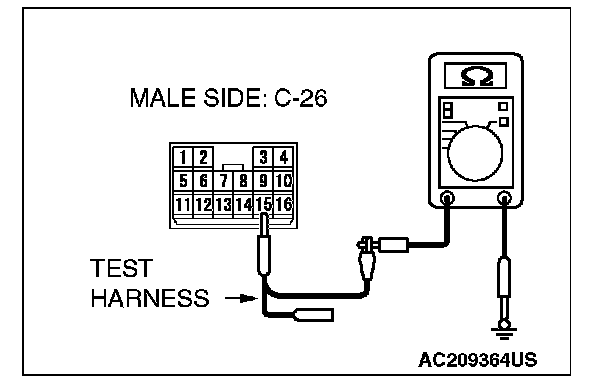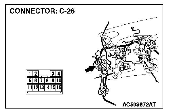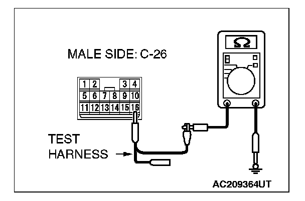 1. Disconnect intermediate connector C-26, and measure the resistance at the male side (at front wiring harness side).