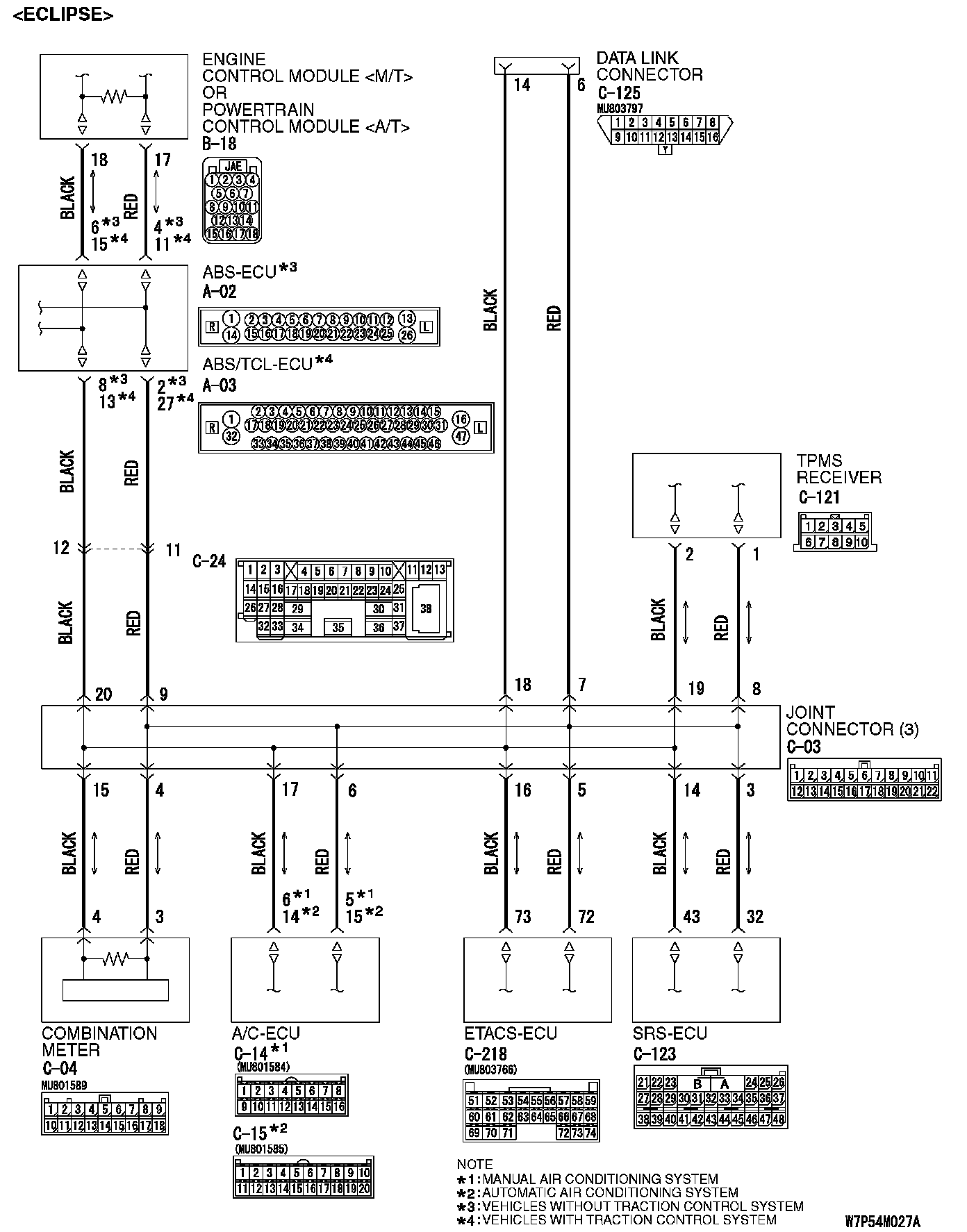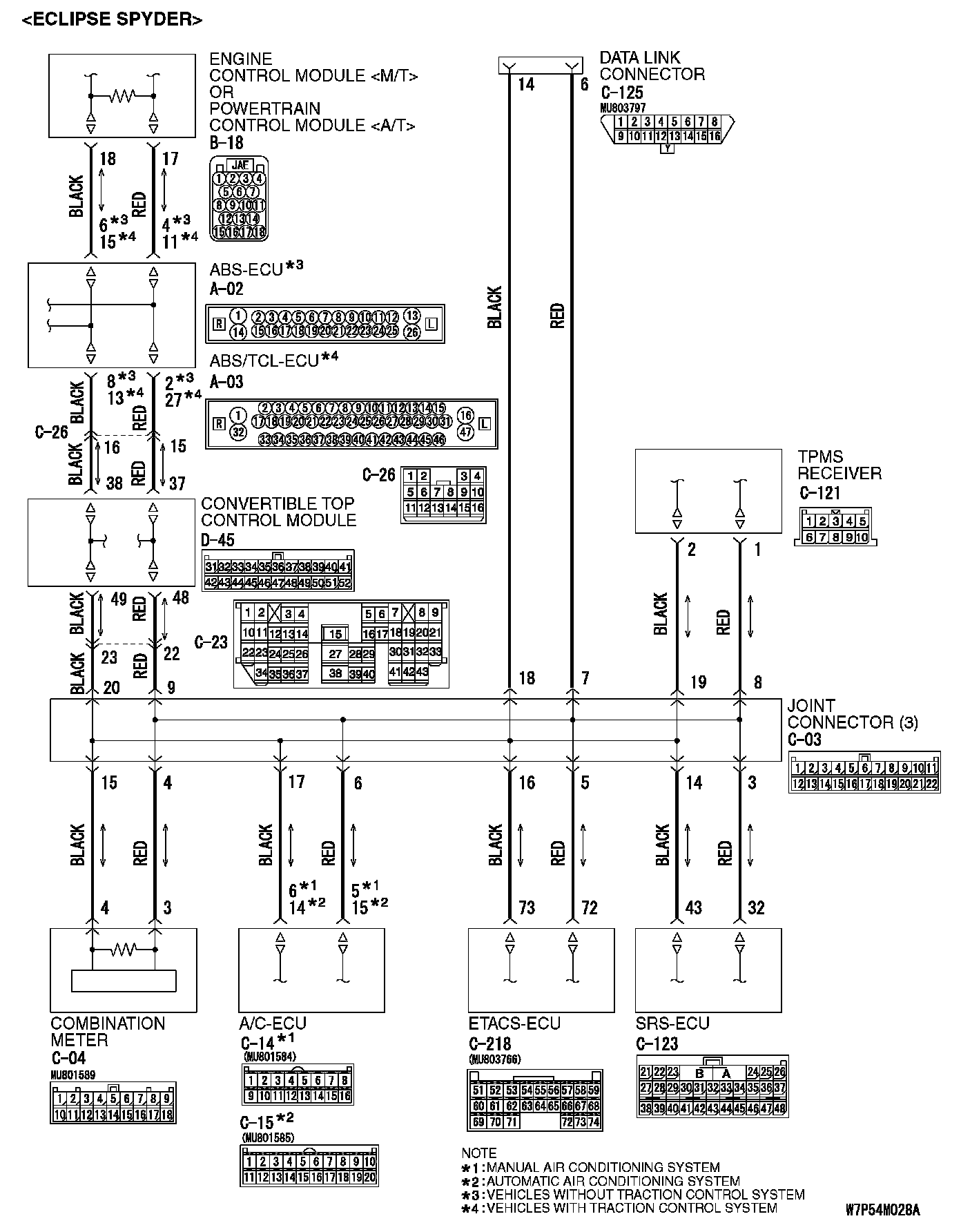 NOTE: The scan tool MB991958 cannot receive all the periodically sent data from each ECU by the open circuit of harness between the data link connector and the joint connector (3). In addition, the scan tool MB991958 measures the voltage itself and shows 2.5 volts due to the open circuit of harness. Therefore, it is judged as a short between CAN_H and CAN_L line.