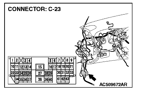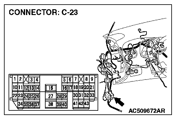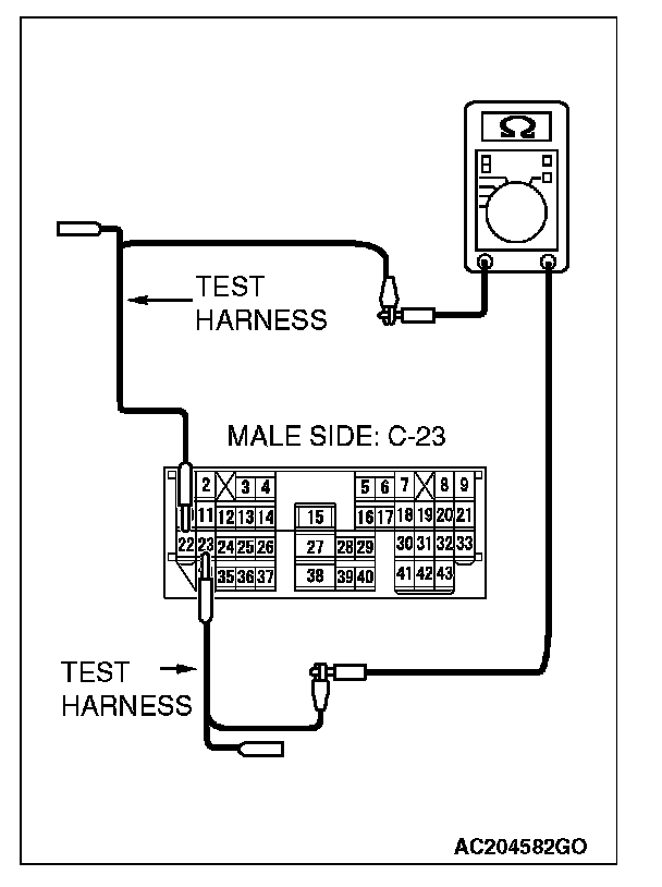 3. Measure the resistance between intermediate connector C-23 (terminals 22 and 23).