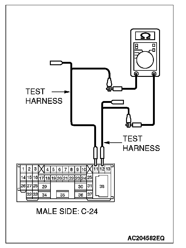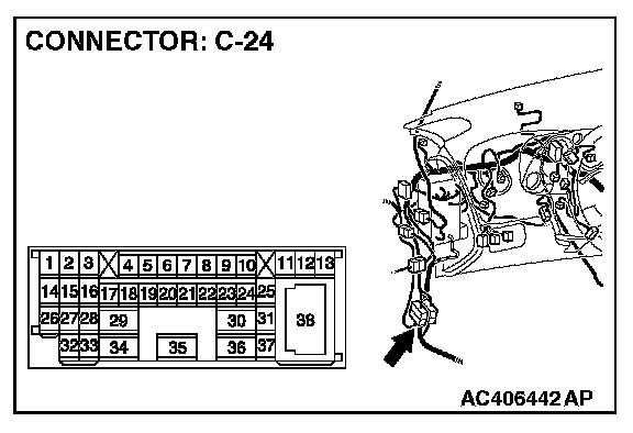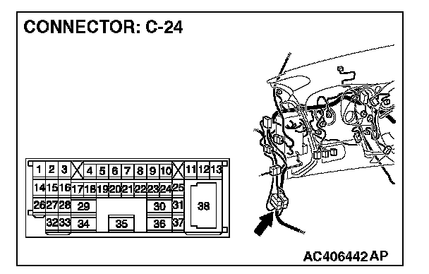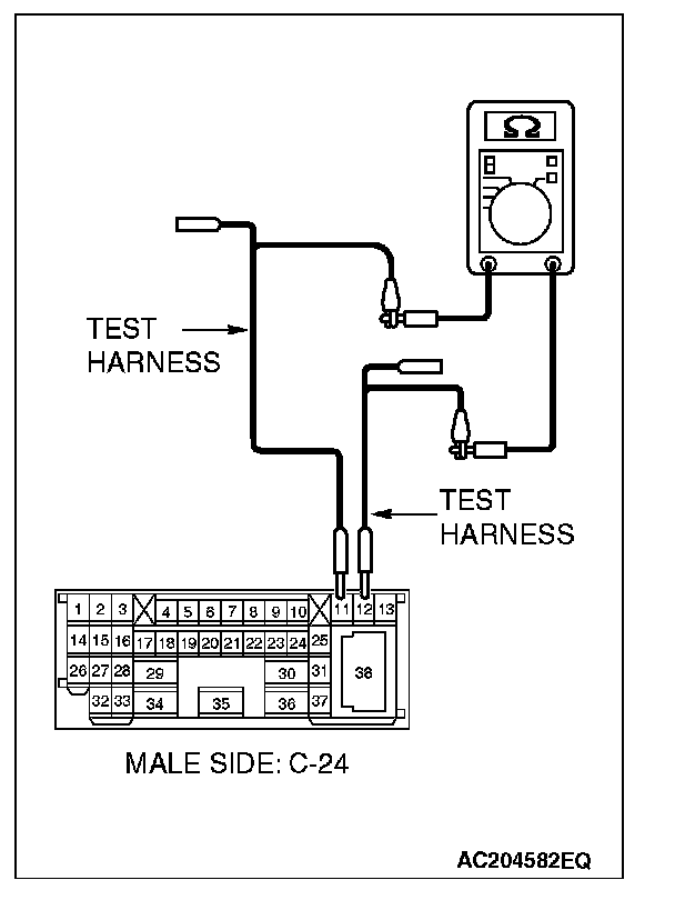 2. Disconnect intermediate connector C-24, and measure the resistance at the male side (at front wiring harness side).