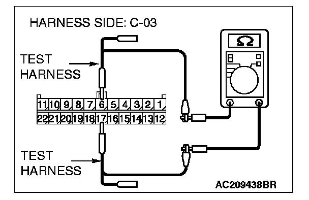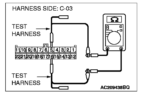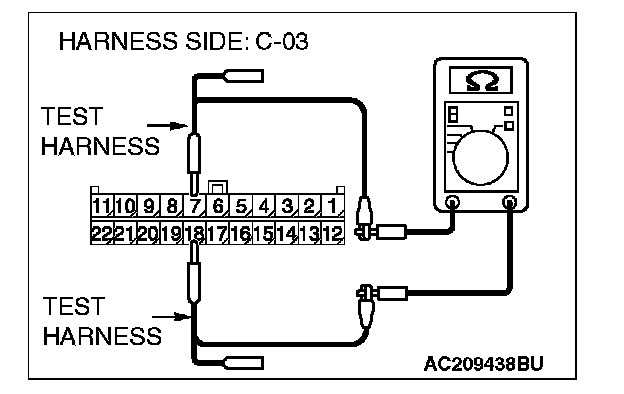 2. Disconnect joint connector (3) C-03, and measure the resistance at the wiring harness side of joint connector (3) C-03.
