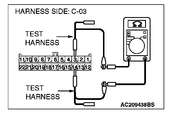 3. Measure the resistance between joint connector (3) terminals 3 and 14.
