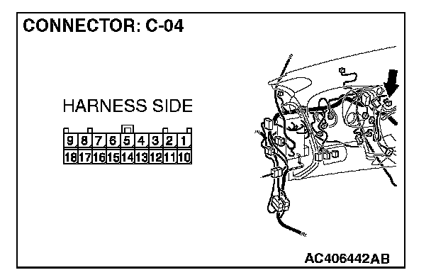 2. Disconnect combination meter C-04, and measure the resistance at the component side of combination meter connector C-04.
