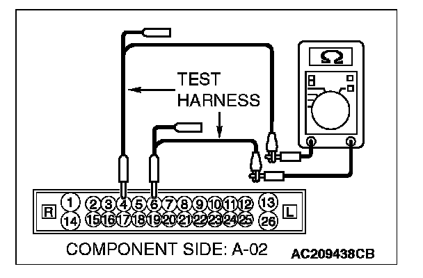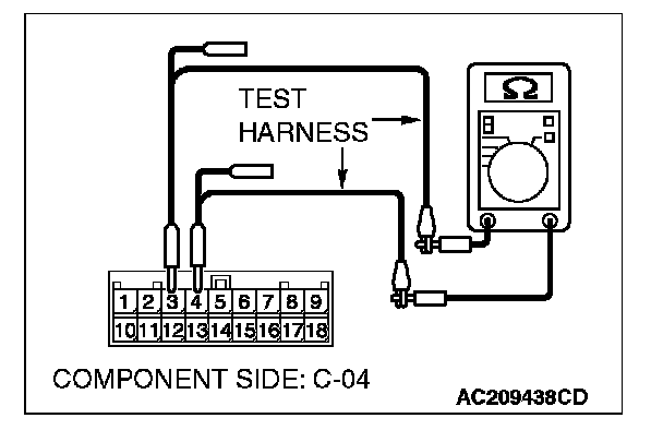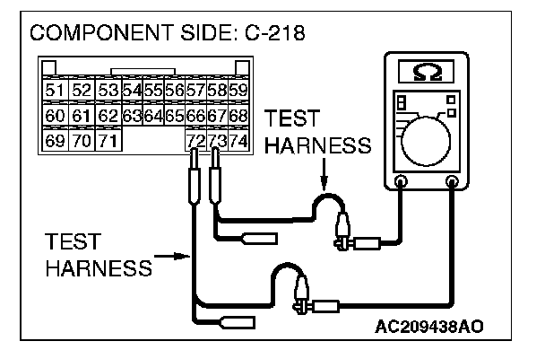 2. Disconnect ETACS-ECU connector C-218, and measure the resistance at the component side of ETACS-ECU connector C-218.