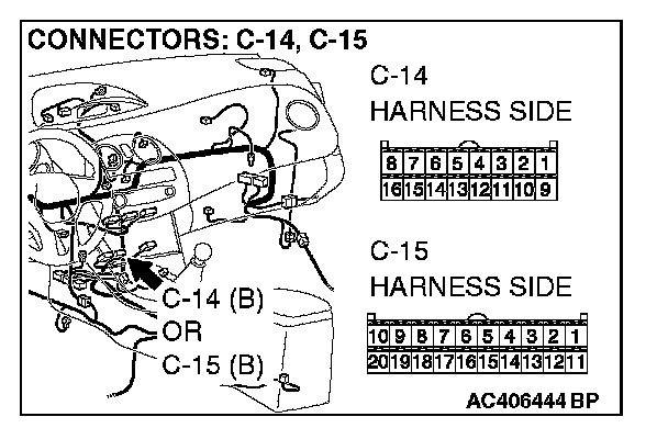 STEP 10. Check the A/C-ECU for short circuit. Measure the resistance at A/C-ECU connector C-14