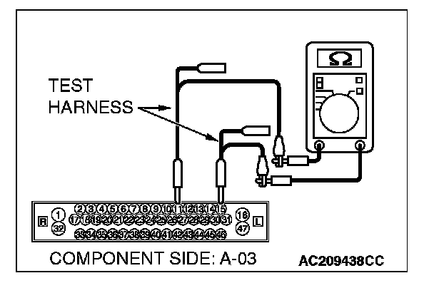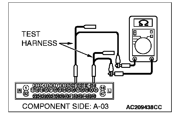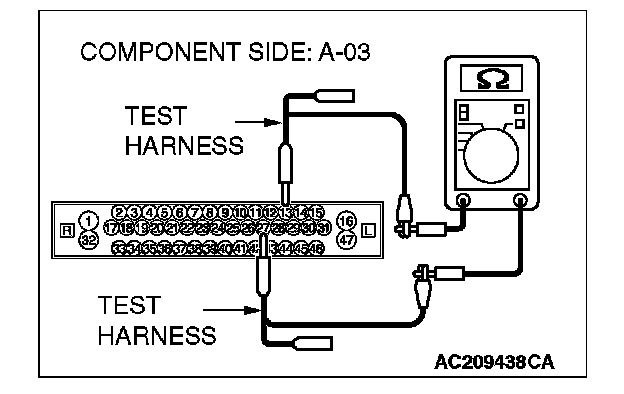 4. Measure the resistance between ABS/TCL-ECU connector A-03 (terminals 11 and 15).