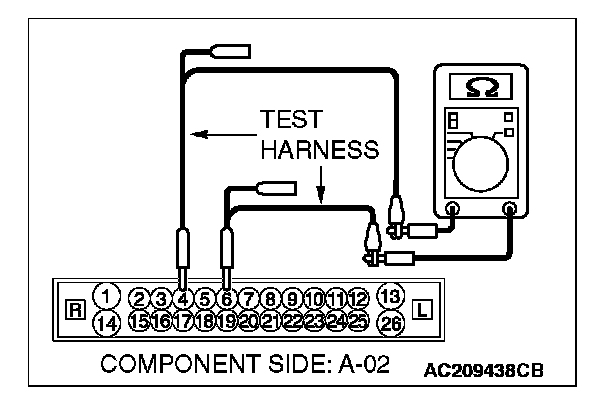 3. Measure the resistance between ABS-ECU connector A-02 (terminals 4 and 6).