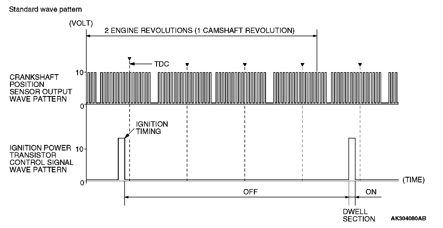 Point: The power transistor control signal (ignition timing) is advanced when the engine speed is increased.