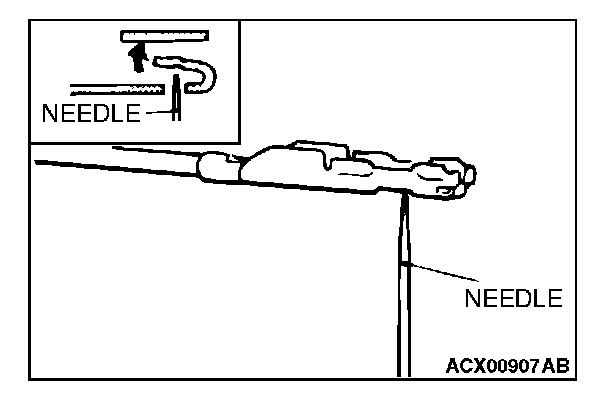 4. Insert a needle through the hole provided on the terminal and raise the contact point. Lightly squeeze the outer edge so the flats are parallel with the bottom.
