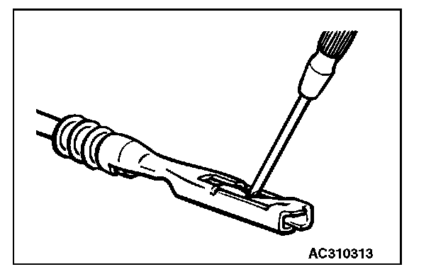 3. Press the contact point to the male terminal down by holding a screwdriver [1.4 mm (0.06 inch) width] as shown in the figure.