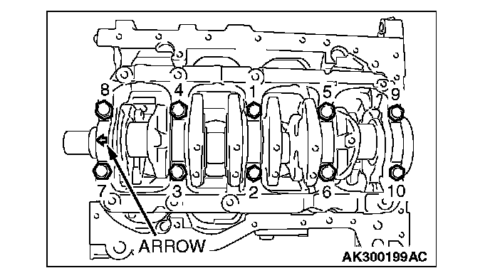 Crankshaft Bearing CapTighten the bolts to the specified torque in the tightening sequence shown.