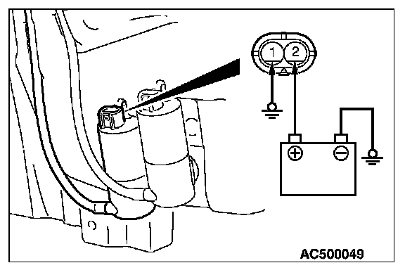 2. Check to see that the water is vigorously sprayed when connecting the positive battery terminal to terminal number 2 and terminal number 1 to ground.