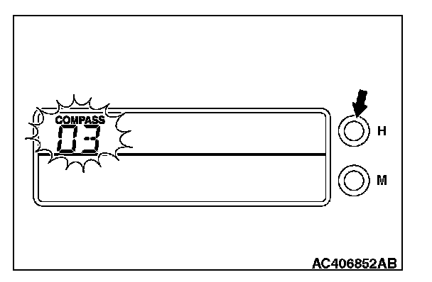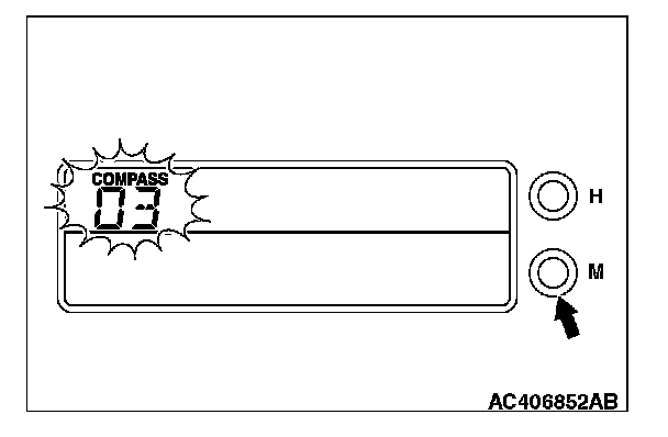4. Pressing the "M" switch will exit zone entry mode. This area code number should remain in the battery off. If the compass deviates from the correct indication soon after repeated adjustment, have the compass checked at refer to INSPECTION PROCEDURE 5.