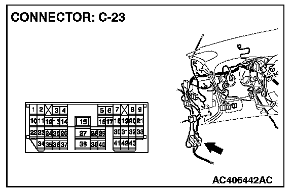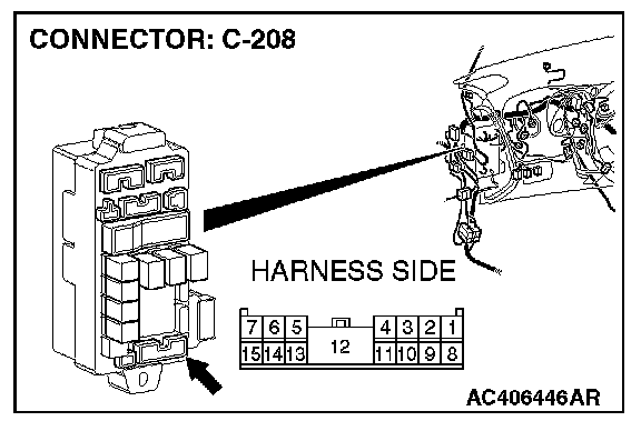 NOTE: Also check intermediate connector C-23 and junction block connector C-208 for loose, corroded, or damaged terminals, or terminals pushed back in the connector. If intermediate connector C-23 or junction block connector C-208 is damaged, repair or replace the damaged component(s) as described in Harness Connector Inspection.