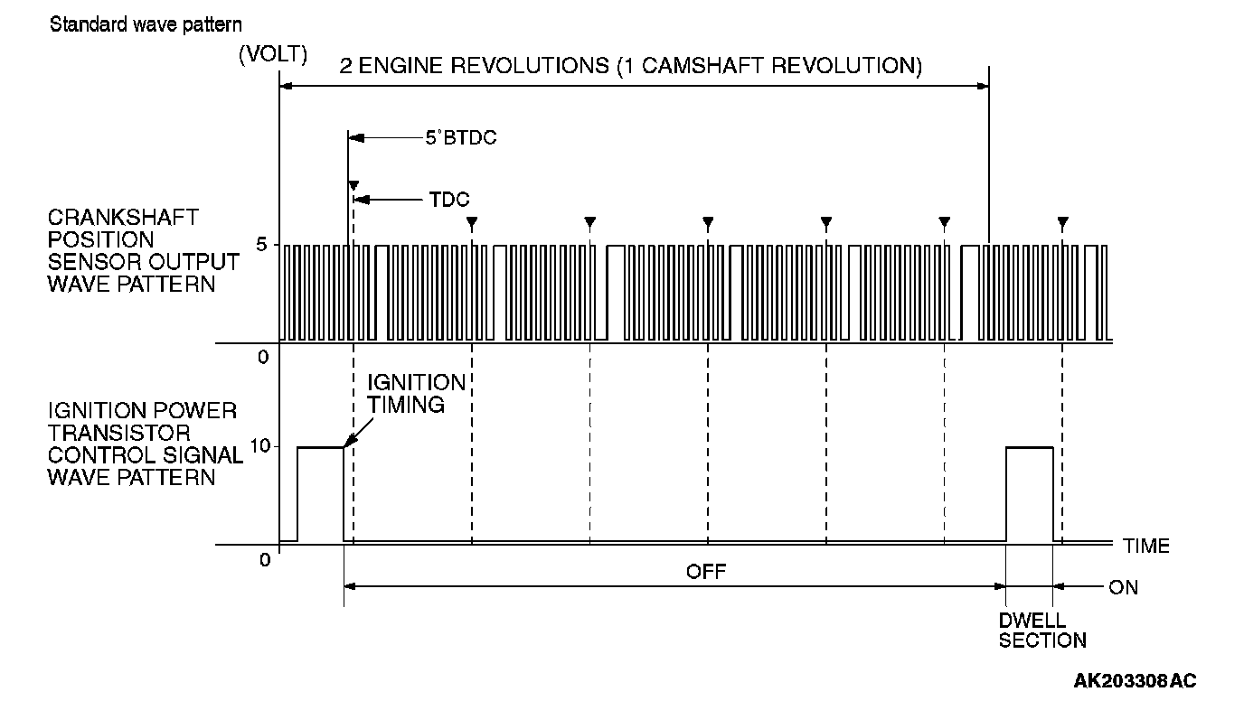 Point: The power transistor control signal (ignition timing) is advanced when the engine speed is increased.