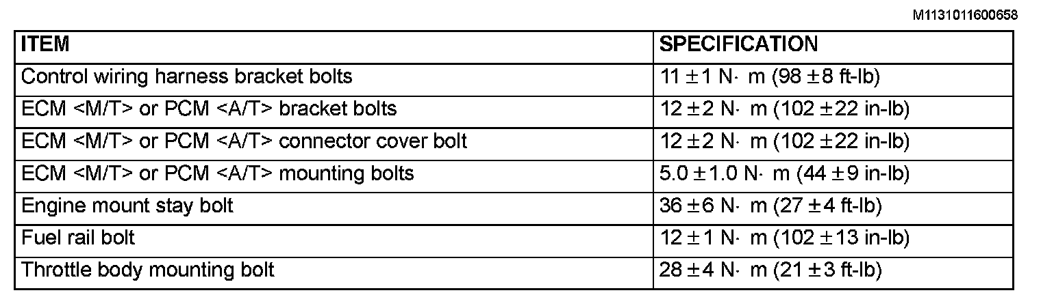 Fastener Tightening Specifications: