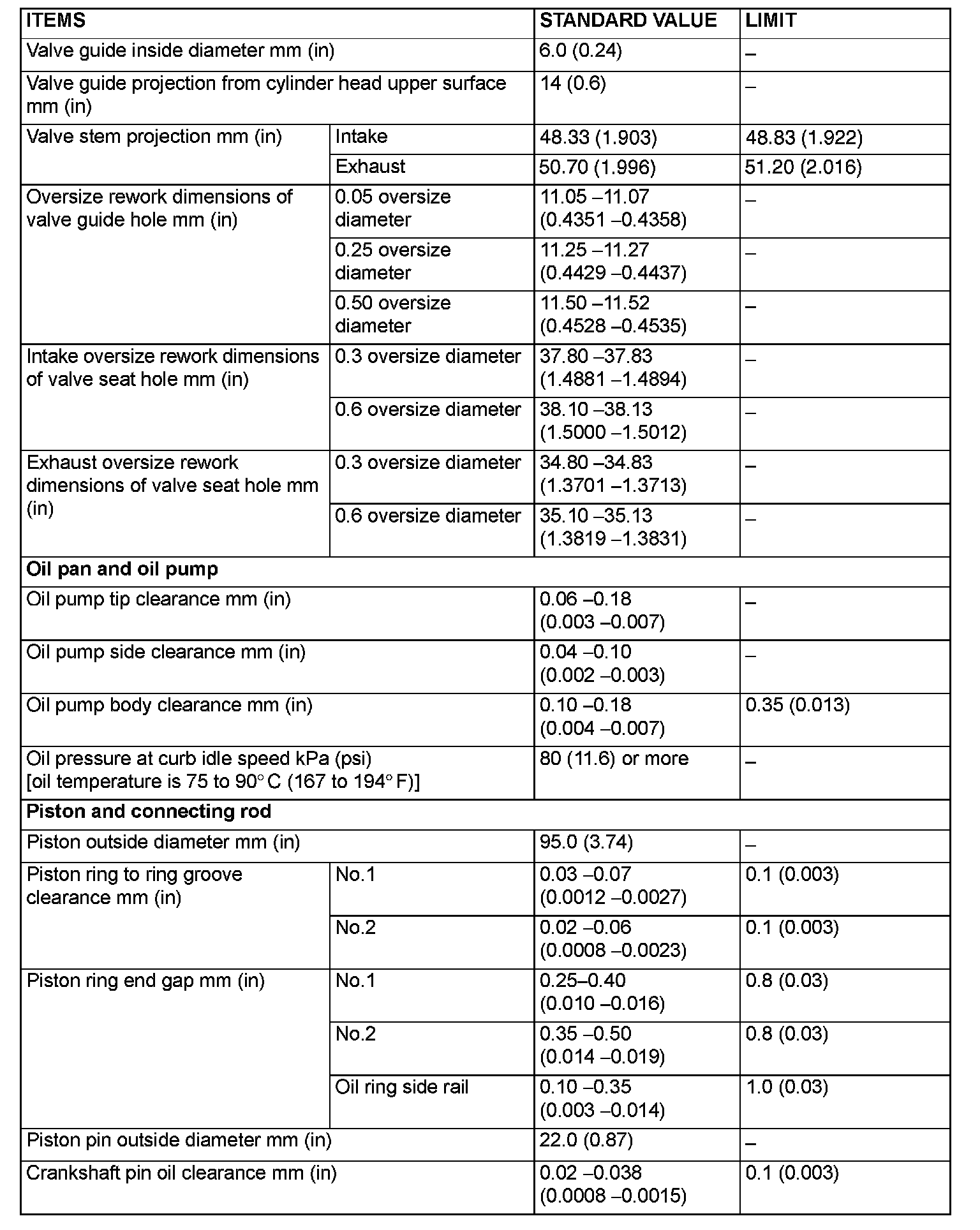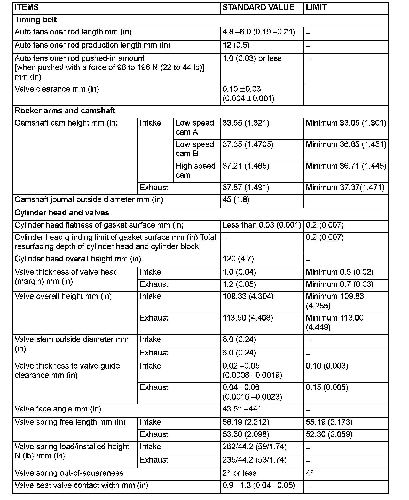 SERVICE SPECIFICATIONS (Updated Per TSB# 06-11-006):