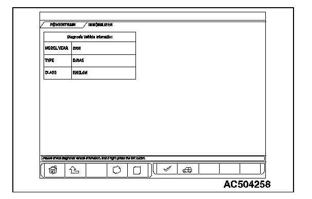 CAUTION: To prevent damage to scan tool MB991958, always turn the ignition switch to the "LOCK" (OFF) position before connecting or disconnecting scan tool MB991958.