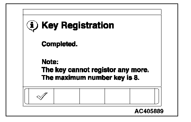 10. A maximum of eight ignition keys can be registered. When the registration of the eighth ignition key is finished, key registration completion menu is displayed. Press the OK button and finish the ignition key registration.