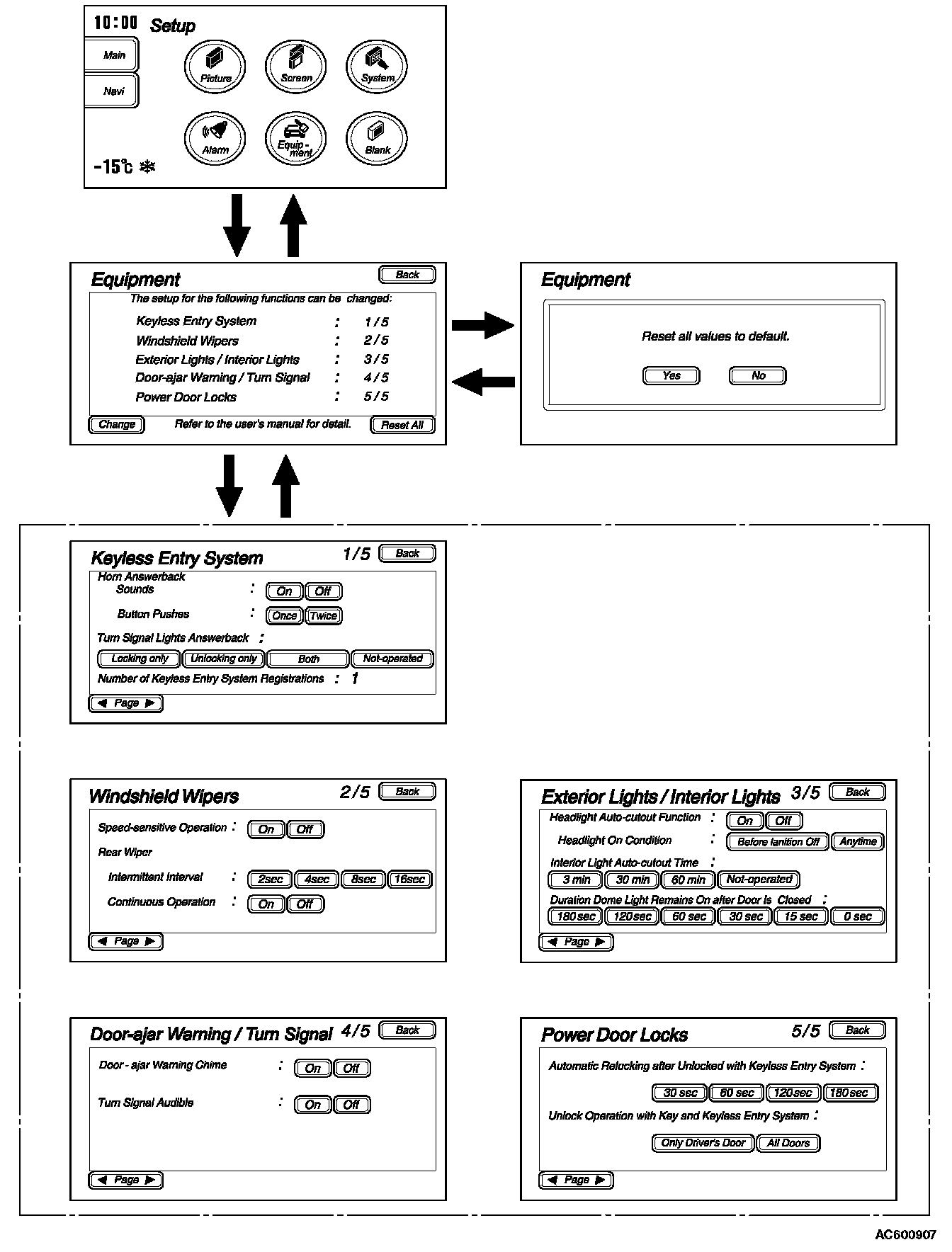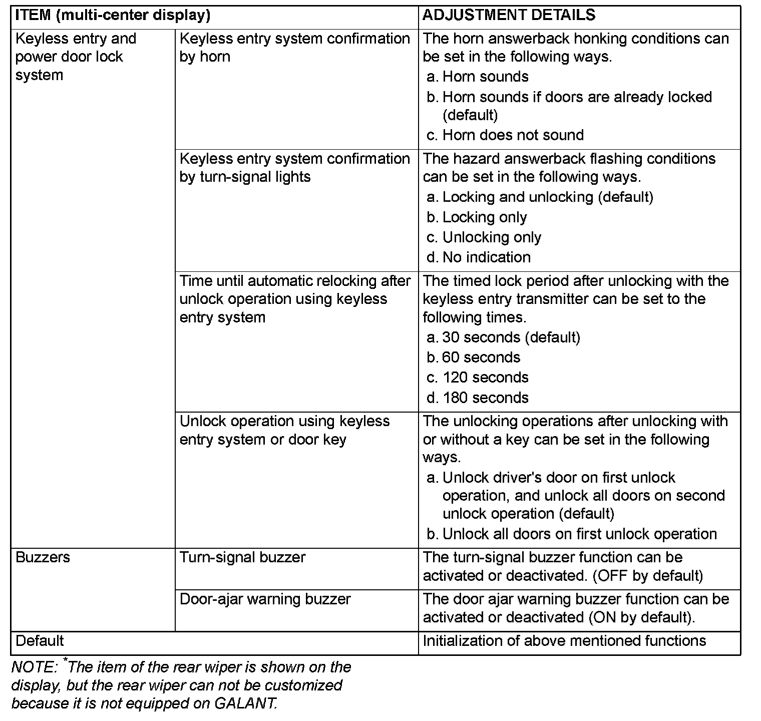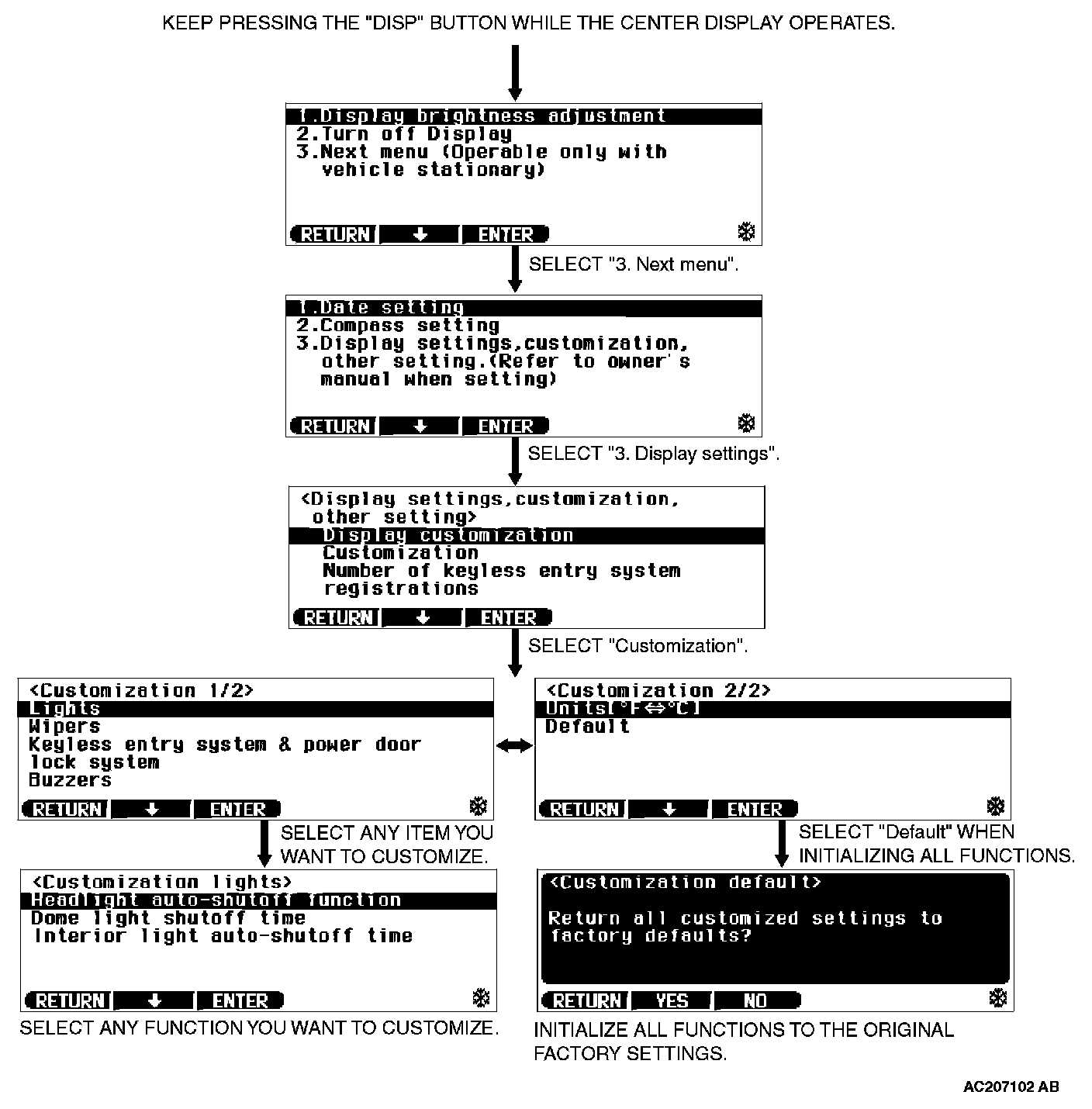 ADJUSTMENT BY OPERATING THE MULTI-CENTER DISPLAY [VEHICLES WITH MITSUBISHI MULTI COMMUNICATION SYSTEM]