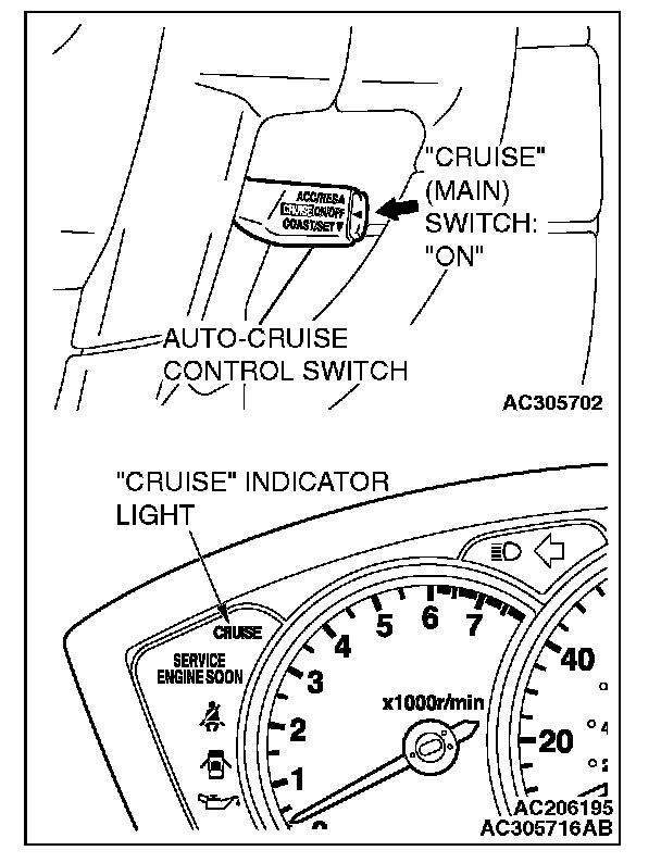 1. Switch "ON" the "CRUISE" (MAIN) switch.