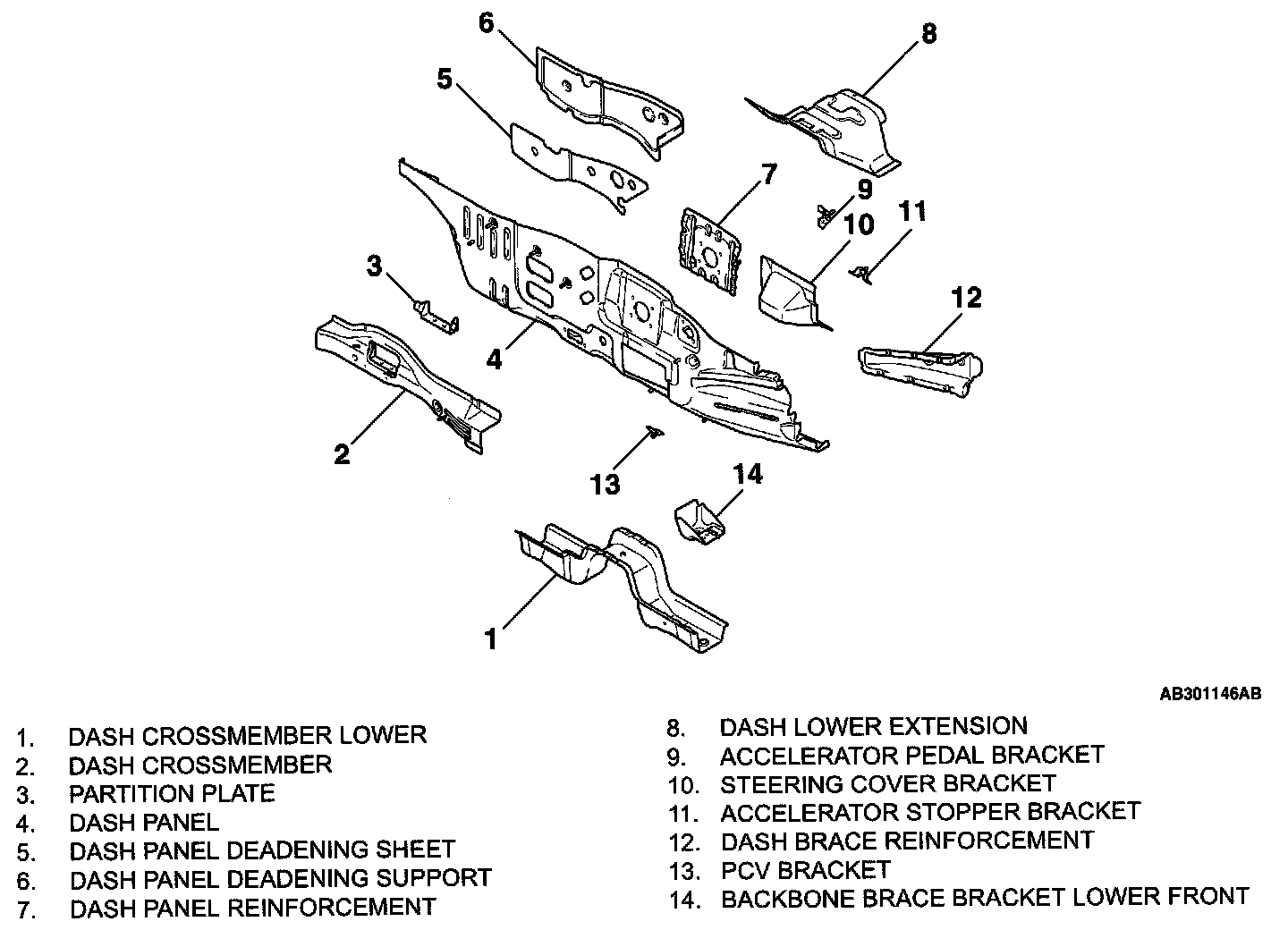 DASH PANEL- A large dash crossmember and dash brace installed in the chassis is used to disperse energy upon impact efficiently, so that cabin deformation is suppressed.
