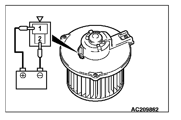 When battery voltage is applied between the terminals, check that the motor operates. Also, check that there is no abnormal noise.