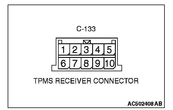 1. Turn the ignition switch to the "LOCK" (OFF) position and disconnect the TPMS receiver connector.
