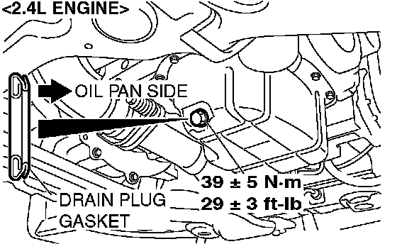 3. Install a new drain plug gasket so that it faces in the direction shown in the illustration, and then tighten the drain plug to the specified torque.